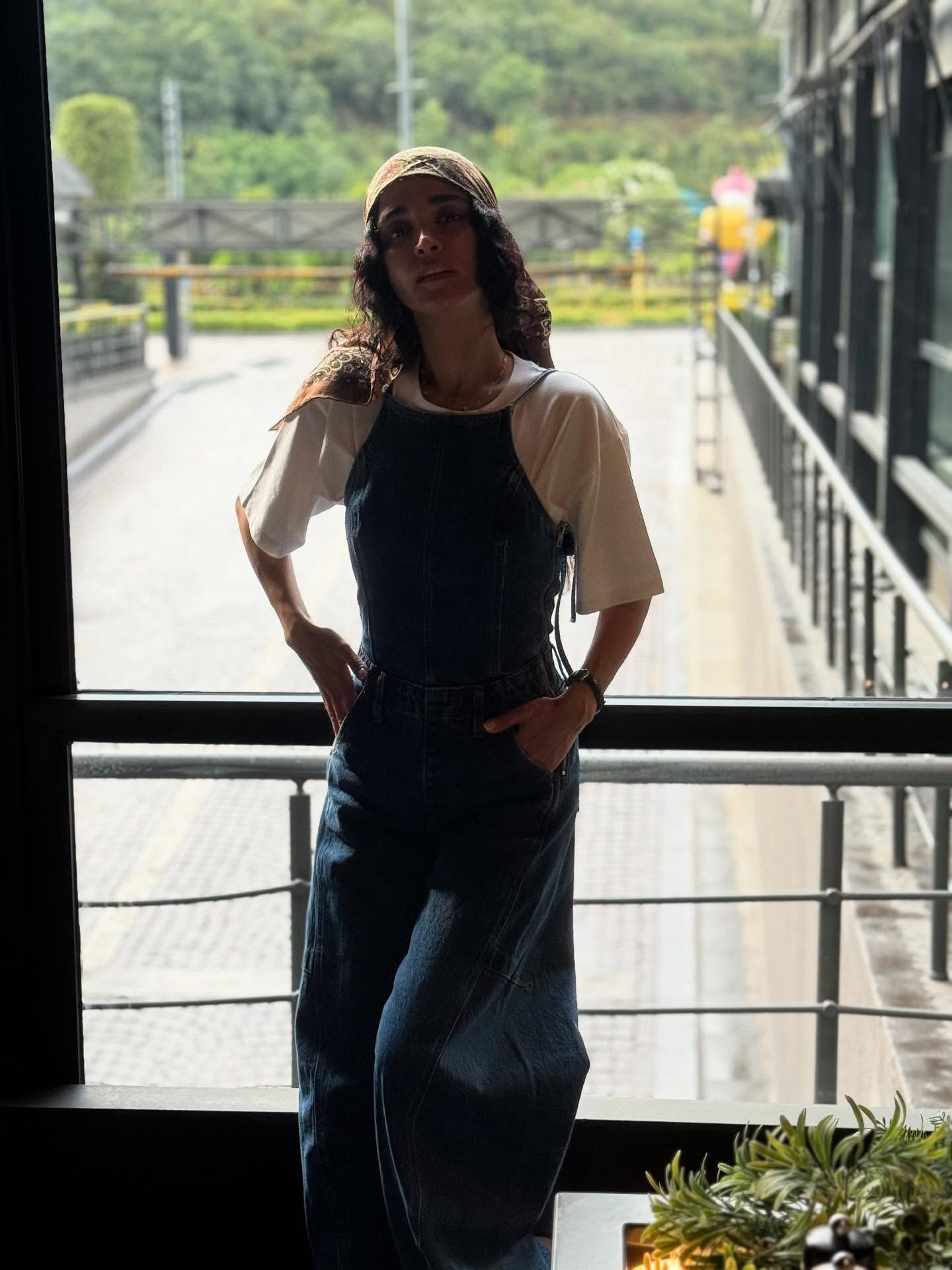 این بازیگر در ترکیه (احتمالاً استانبول) با یک تیپ کژوال و اروپایی شامل تیشرت سفید ساده، شلوار گشاد و یک دستمال سر بافتنی قهوهای دیده شد.