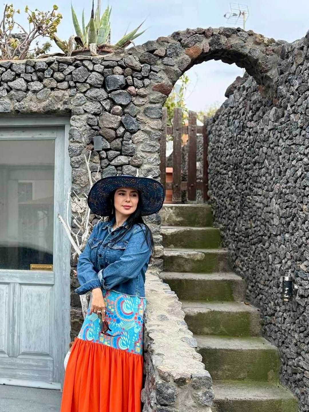 در کوچهای باریک و سنگفرششده، میان دیوارهای نارنجی و پنجرههای آبی، کافهای دنج پنهان شده است؛ در همین فضای شاعرانه، شیدا یوسفی روی صندلی تابی حصیری نشسته و ساعتی را به آرامش و لذت از لحظات گذرانده است.