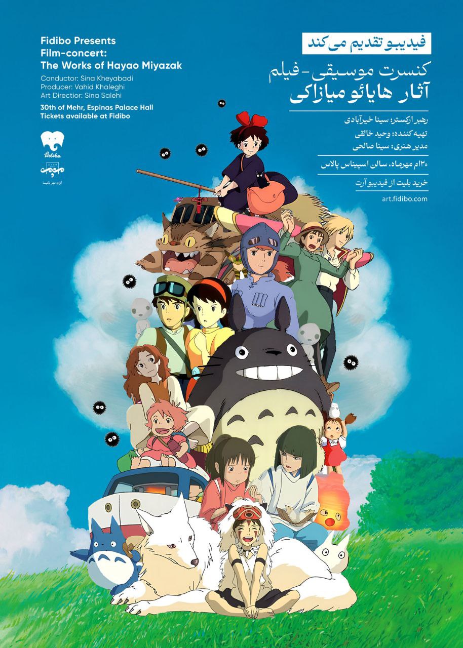 به نقل از روابط عمومی فیدیبو، کنسرت موسیقی-فیلم انیمههای هایائو میازاکی، چهارشنبه ۳۰ مهر ۱۴۰۴ در دو سانس ۱۹ و ۲۲ در سالن رویال تهران اسپیناس پالاس توسط فیدیبو برگزار میشود.