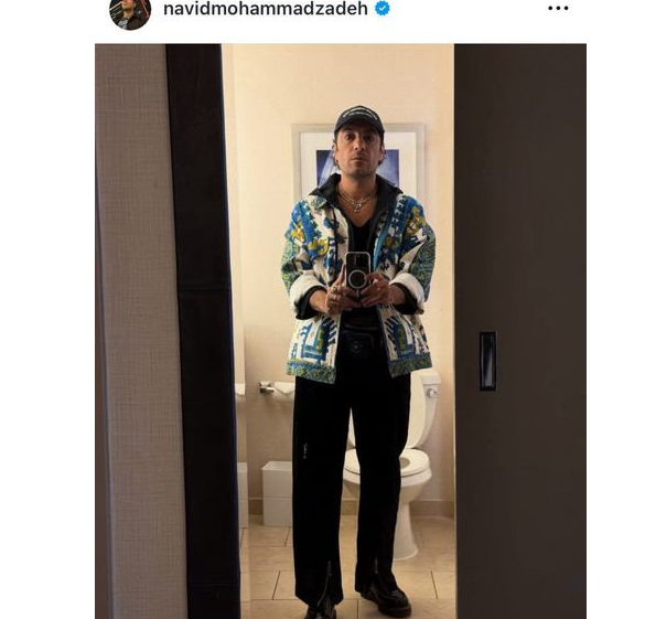 نوید محمدزاده عکس جدیدی از استایل خود داخل سرویس بهداشتی منتشر کرد.