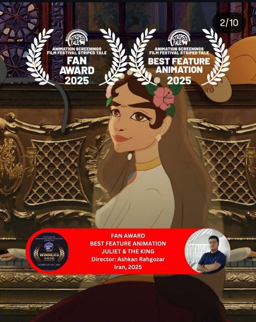این نویسنده و کارگردان انیمیشن که «ژولیت و شاه» را ابتدا در جشنواره فیلم فجر و در بخش بینالملل در جشنواره فانتزیا کانادا رونمایی کرد، به ایسنا گفت: این انیمیشن در ششمین دوره جشنواره فیلم «Striped Tale» گرجستان دو جایزه بهترین انیمیشن سینمایی و جایزه مردمی را گرفته است.