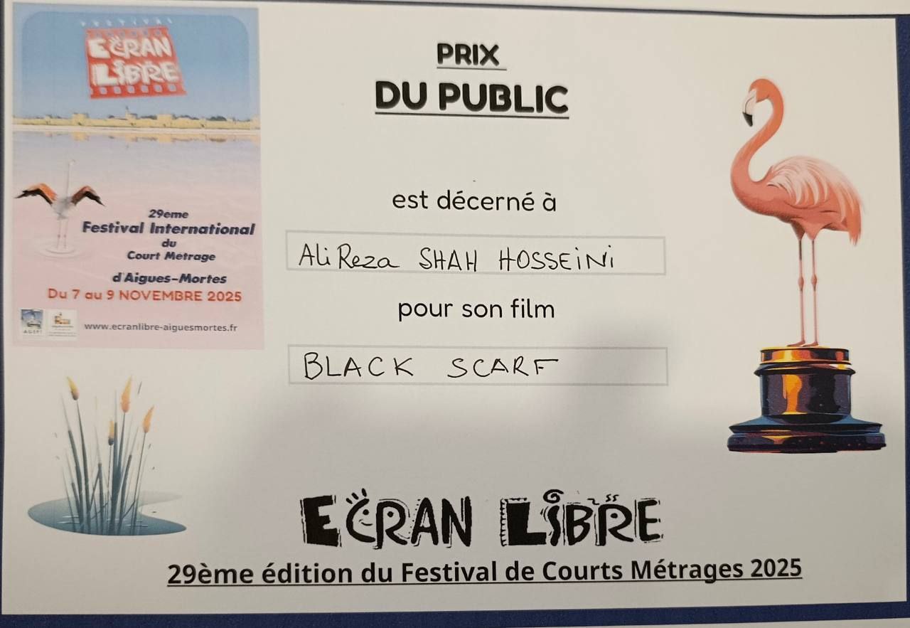 به نقل از مشاور رسانهای، فیلم کوتاه «شال سیاه» ساخته علیرضا شاهحسینی در بیستونهمین دوره جشنواره اکران آزادی (Écran Libre) در فرانسه برنده جایزهای با عنوان جایزه عمومی و مبلغ ۵۰۰ یورو شد.
