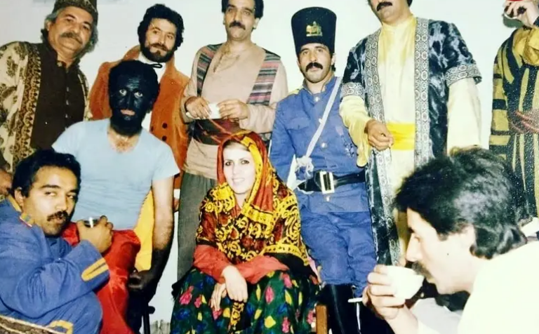 در اینجا تصویری از پشت صحنه نمایش «بیا تا گل برافشانیم» را در سال 1363 ملاحظه میکنید. مرحوم خسرو شکیبایی (در حال خوردن چای) و پوراندخت مهیمن از جمله حاضران در تصویر هستند.