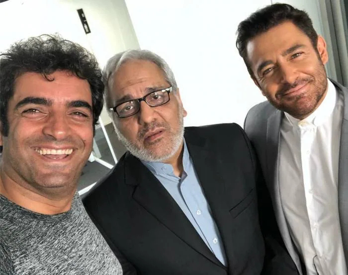 منوچهر هادی در کنار مهران مدیری و محمدرضا گلزار