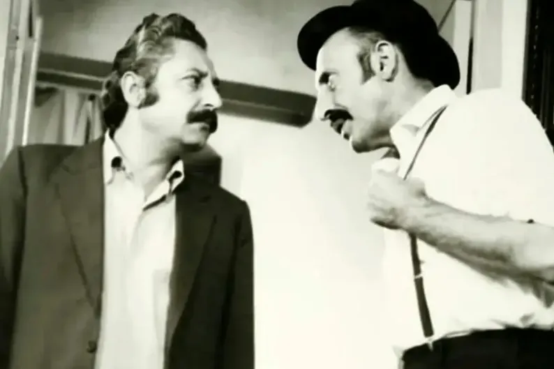 عکسی نادر و جذاب از دو چهره ماندگار سینمای ایران، جمشید مشایخی و مرتضی احمدی، در سال ۱۳۵۱ که بازتابی از دوران طلایی هنر کشور است.