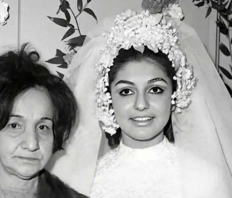 در اینجا تصویری از مراسم عروسی گوگوش و محمود قربانی را در سال 1346 ملاحظه میکنید. این عکس، گوگوش را در کنار مادر همسرش نشان میدهد.