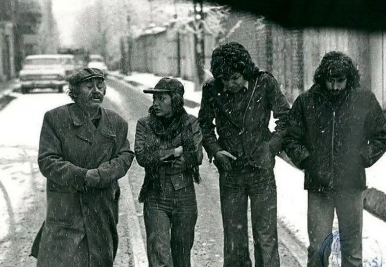 در ادامه تصویری جالب از شهرام شب‌پره، فرزان دلجو‌‌، گوگوش و آرمان را در نمایی از فیلم سینمایی شب غریبان و در سال 1354 می بینید.