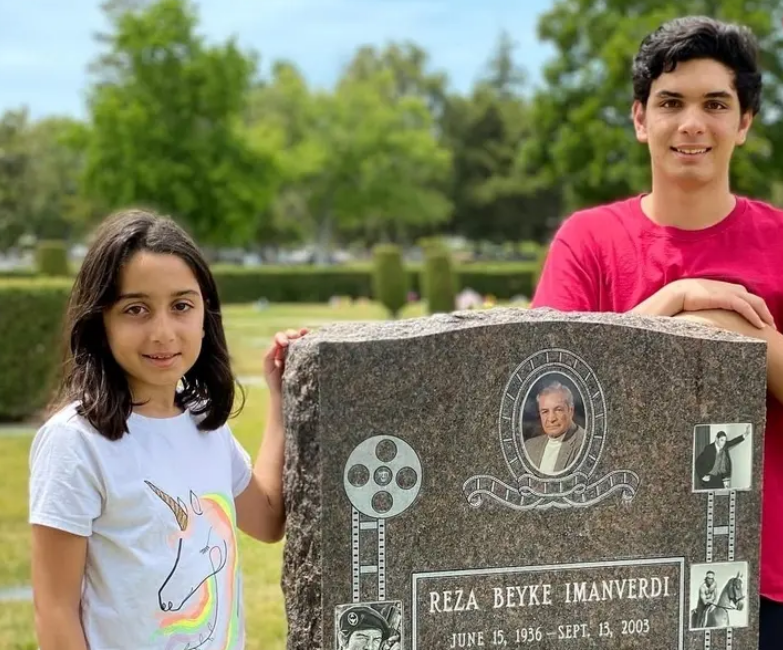 در اینجا تصویری از حضور کیوان و جاسمین بیک ایمانوردی را بر سر مزار پدربزرگشان رضا بیک ایمانوردی در آمریکا ملاحظه میکنید.