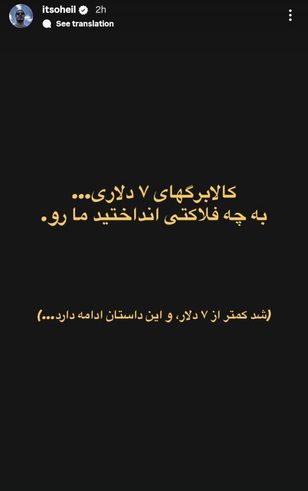 سهیل مستجابیان در یک استوری به اقدام اخیر دولت اعتراض کرد.
