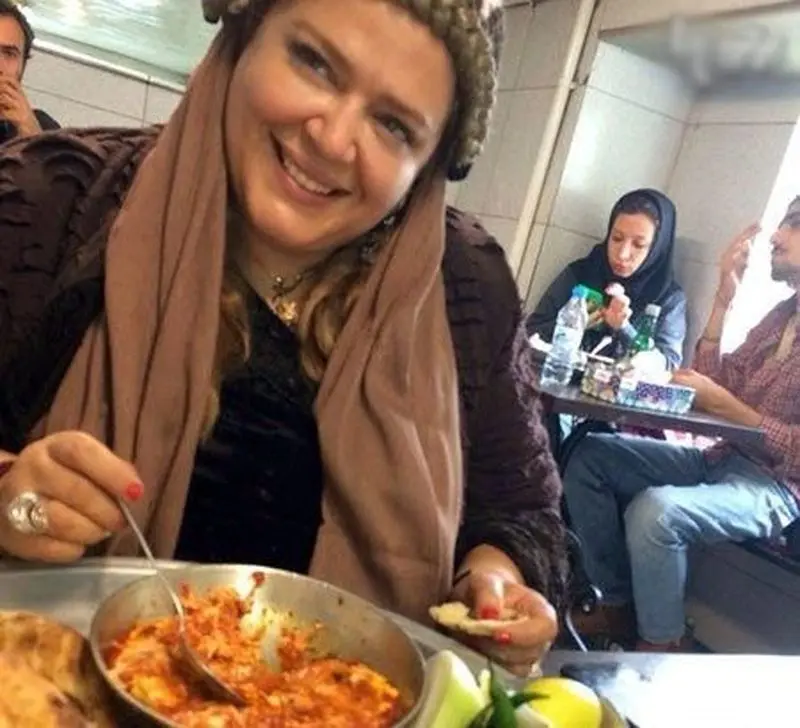 تصویری از بهاره رهنما را در حال خوردن املت که صبحانه محبوب ایرانی هاست مشاهده می کنید.