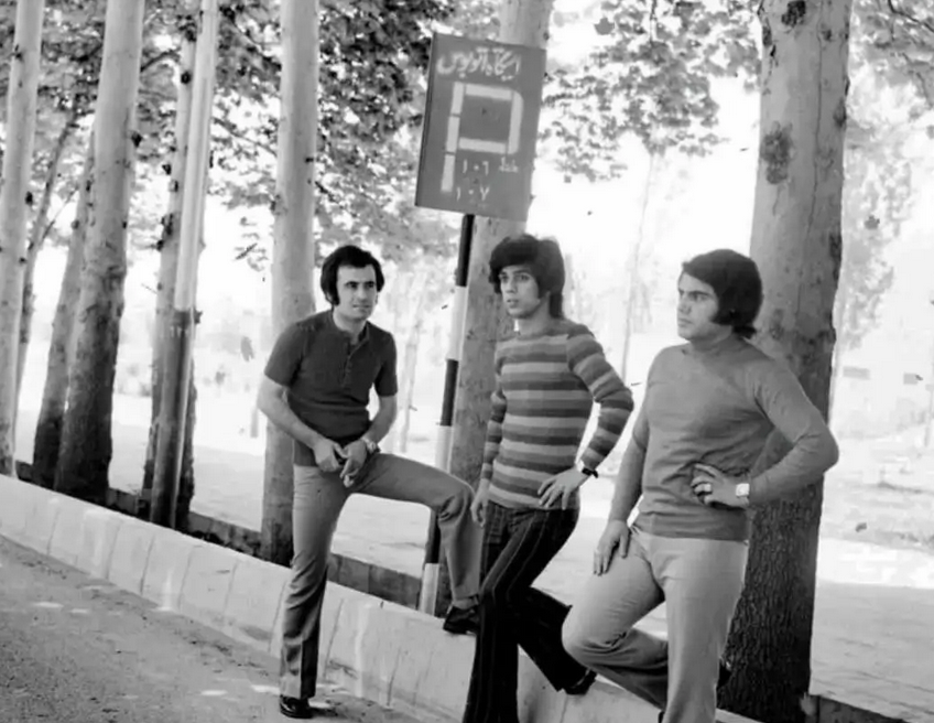سفر در زمان؛ «افشین مقدم، کیوان و داریوش اقبالی» در کنار یک خیابان در تهران؛ سال 50