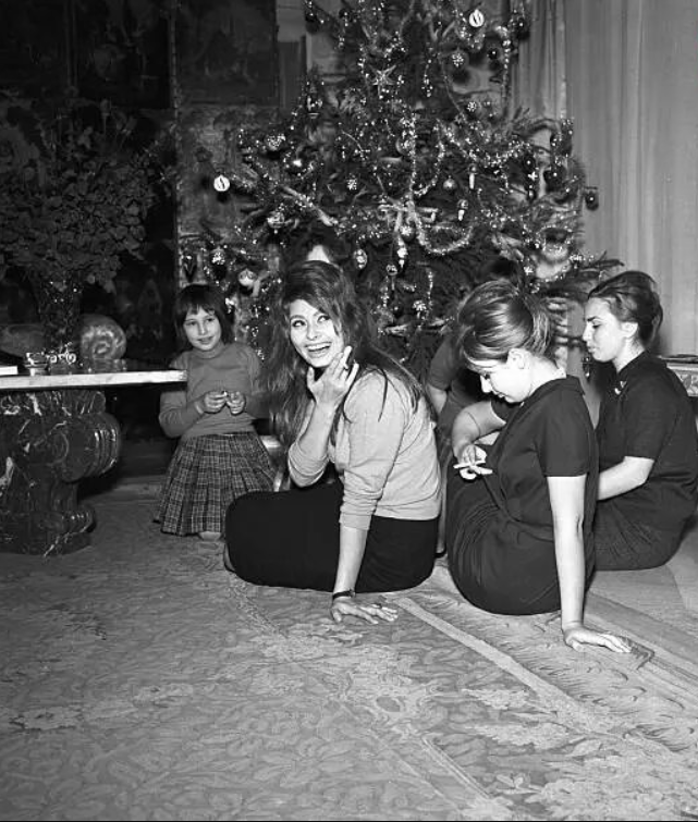 در ادامه تصویری از سوفیا لورن را در کنار خواهرش، ماریا شیکولونه و خانواده در جشن کریسمس در رم و در سال ۱۹۵۵ میبینید.