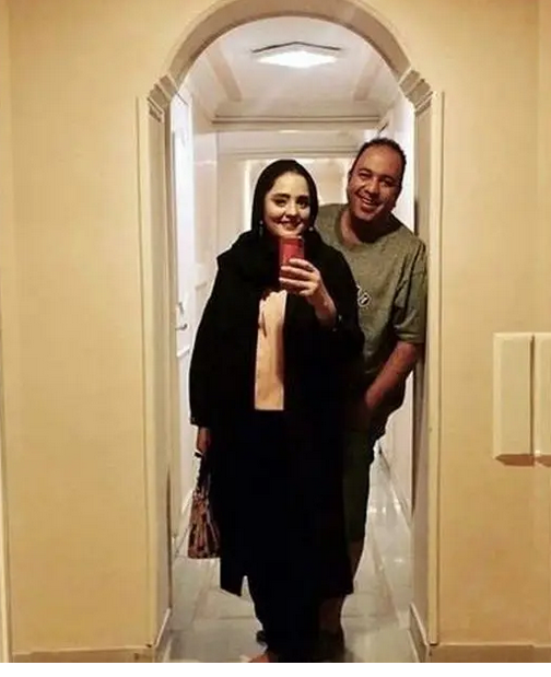 سلفی عاشقانه و زیبای علی اوجی و نرگس محمدی در راهروی خانه لوکسشان در ونک تهران را مشاهده می کنید.