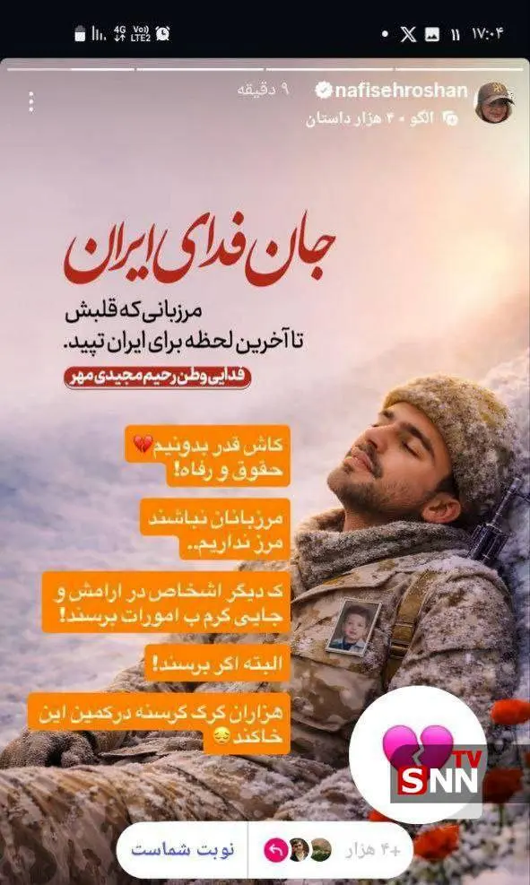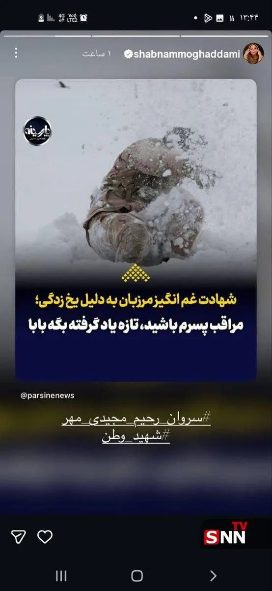 هنرمندان ایرانی با ابراز تاسف عمیق، واکنش‌های خود را به شهادت مرزبان ایرانی، رحیم مجیدی مهر، که بر اثر یخ‌زدگی در مرزهای کشور جان خود را از دست داد، اعلام کردند.
