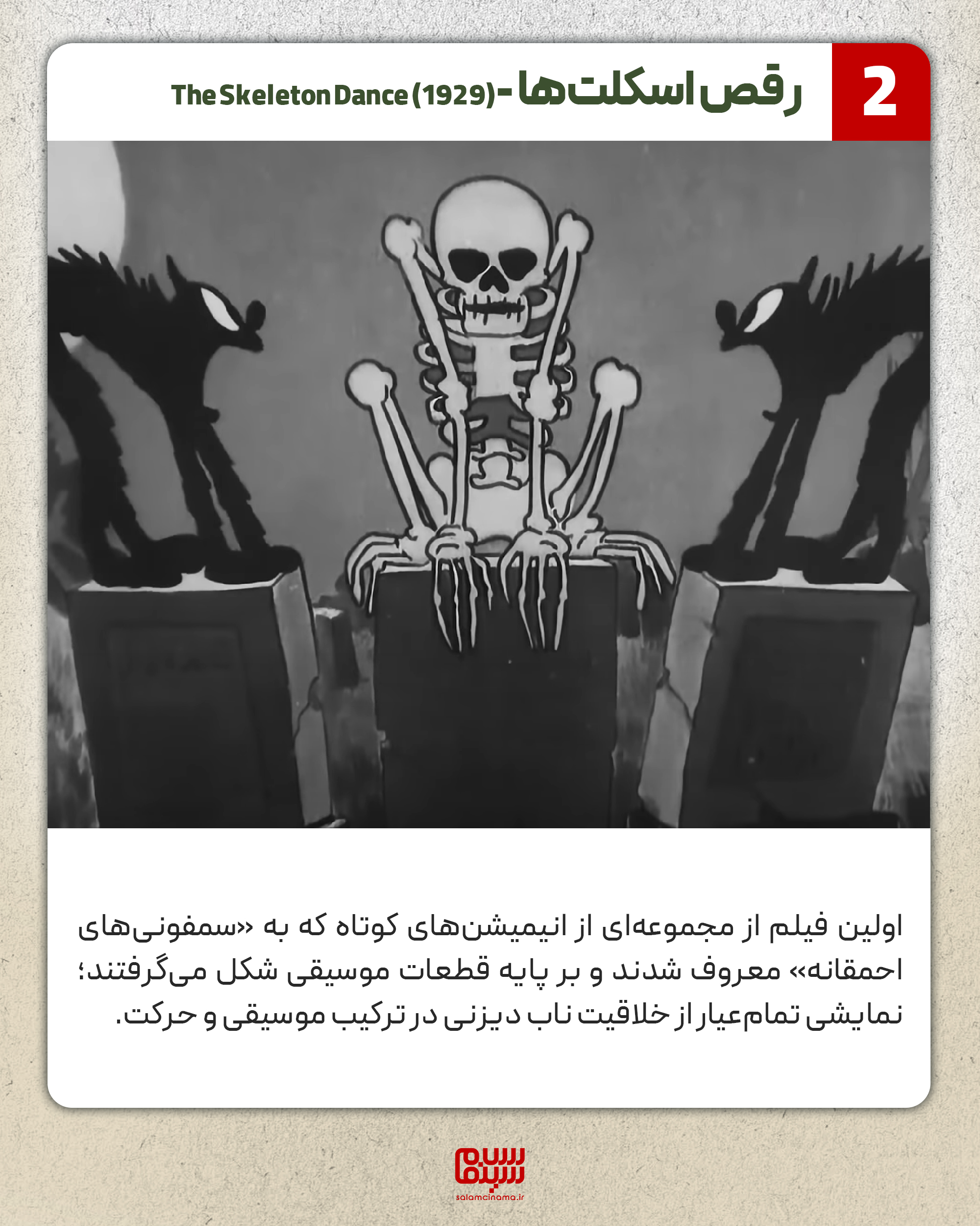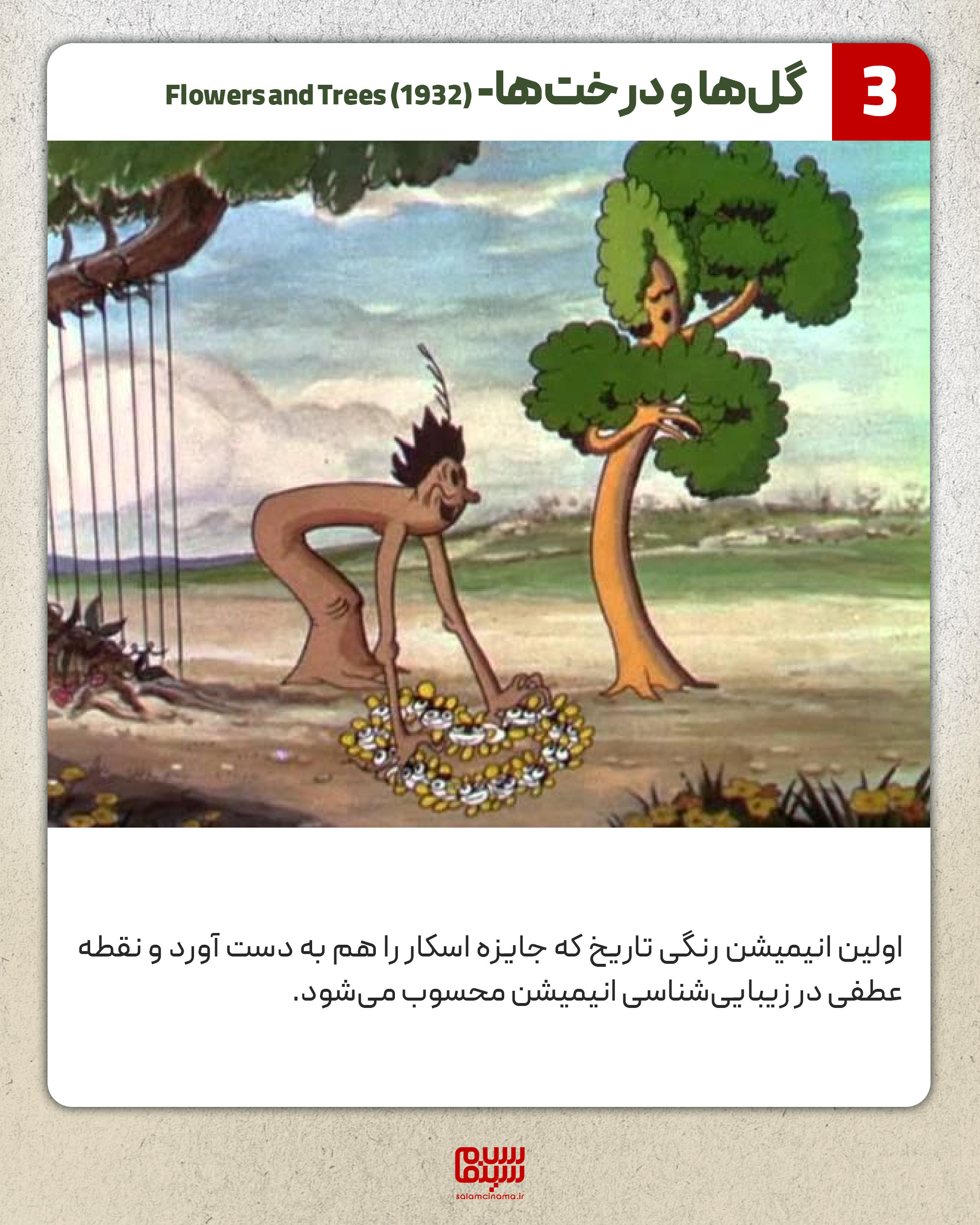 اولین انیمیشن رنگی تاریخ که جایزه اسکار را هم به دست آورد و نقطه عطفی در زیباییشناسی انیمیشن محسوب میشود.