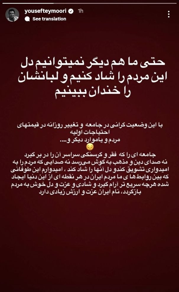 یوسف تیموری در صفحه شخصیاش در اینستاگرام به شرایط اخیر واکنش نشان داد.