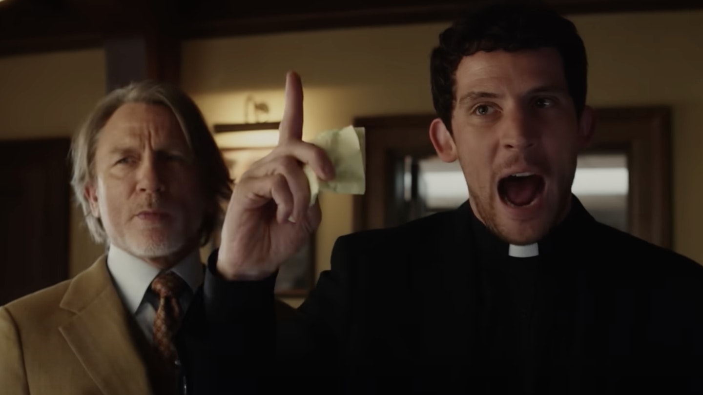 یکی از تفاوتهای اساسی این فیلم با دو اثر پیشین، نحوهی استفاده از روایت صوتی است. برخلاف تصور اولیه، وویساور نه توسط بنوا بلانک، بلکه توسط کشیش جوان جاد با بازی جاش اوکانر ارائه میشود؛ انتخابی که در سطح ایده میتوانست هوشمندانه باشد. قرار بود صدای یک واسطهی ایمانی، نه یک کارآگاه عقلگرا، مسیر روایت را همراهی کند و شکاف میان ایمان و حقیقت را برجسته سازد. اما این انتخاب در اجرا به ضد خود بدل میشود. وویساور اوکانر نه به پیچیدگی درونی شخصیت میافزاید و نه تعلیق میسازد؛ بلکه اغلب جای تصویر را میگیرد و به توضیح مستقیم آنچه باید دیده یا حس شود بسنده میکند. نتیجه، تقلیل تجربهی معمایی به شنیدن گزارش است، نه مشارکت در کشف.