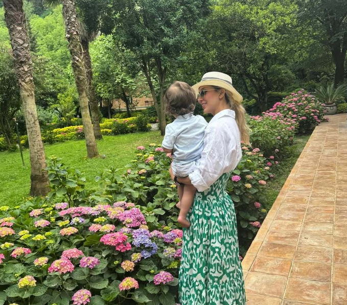 قاب احساسی همسر بهرام رادان و پسرش در حیاط لاکچری خانهشان