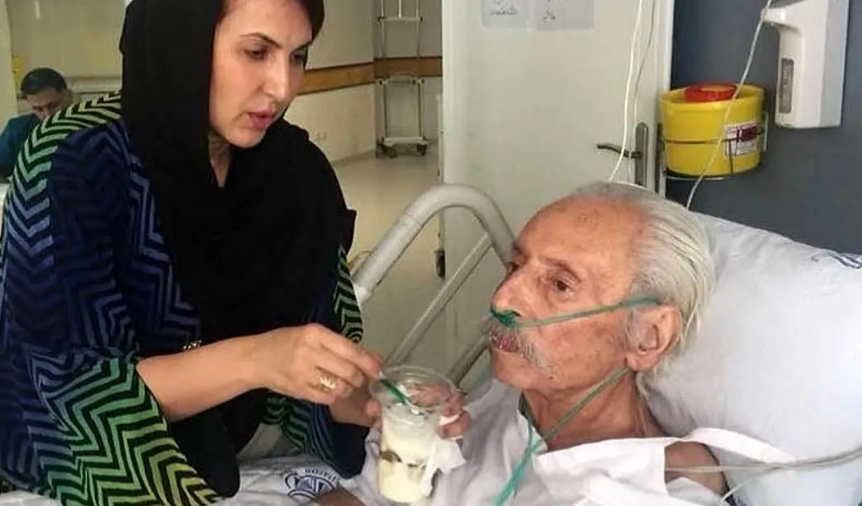 در ادامه تصویری کمتر دیده شده از فاطمه گودرزی را در کنار جمشید مشایخی در بیمارستان مشاهده می کنید. در این تصویر جمشید مشایخی 84 است و در روزهای واپسین زندگی اش قرار دارد.