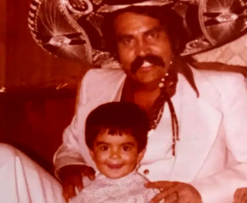 در اینجا تصویری از دوران کودکی سارا خوئینیها را در آغوش پدرش در میانۀ دهۀ 1350 ملاحظه میکنید.