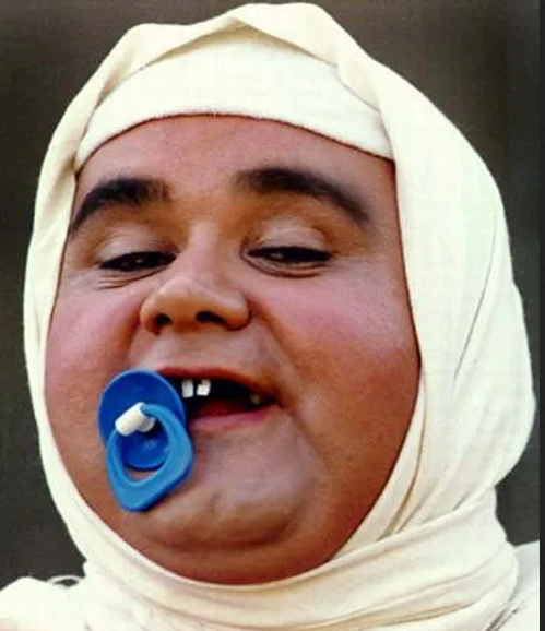 تصویری خنده دار از اکبر عبدی مربوط به یکی از فیلم هایش با پستانک در دهان را مشاهده می کنید.