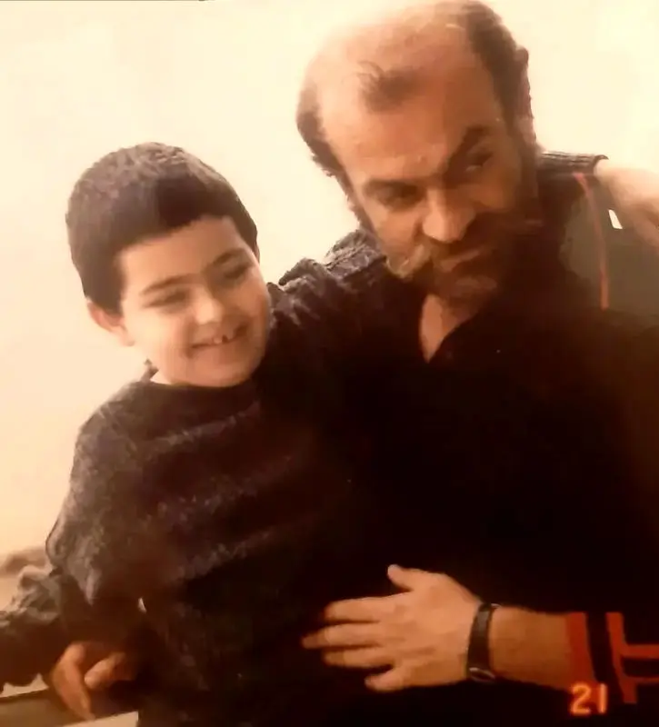 فتحعلی اویسی در ۴۰سالگی و در کنار پسرش؛ سال ۶۴