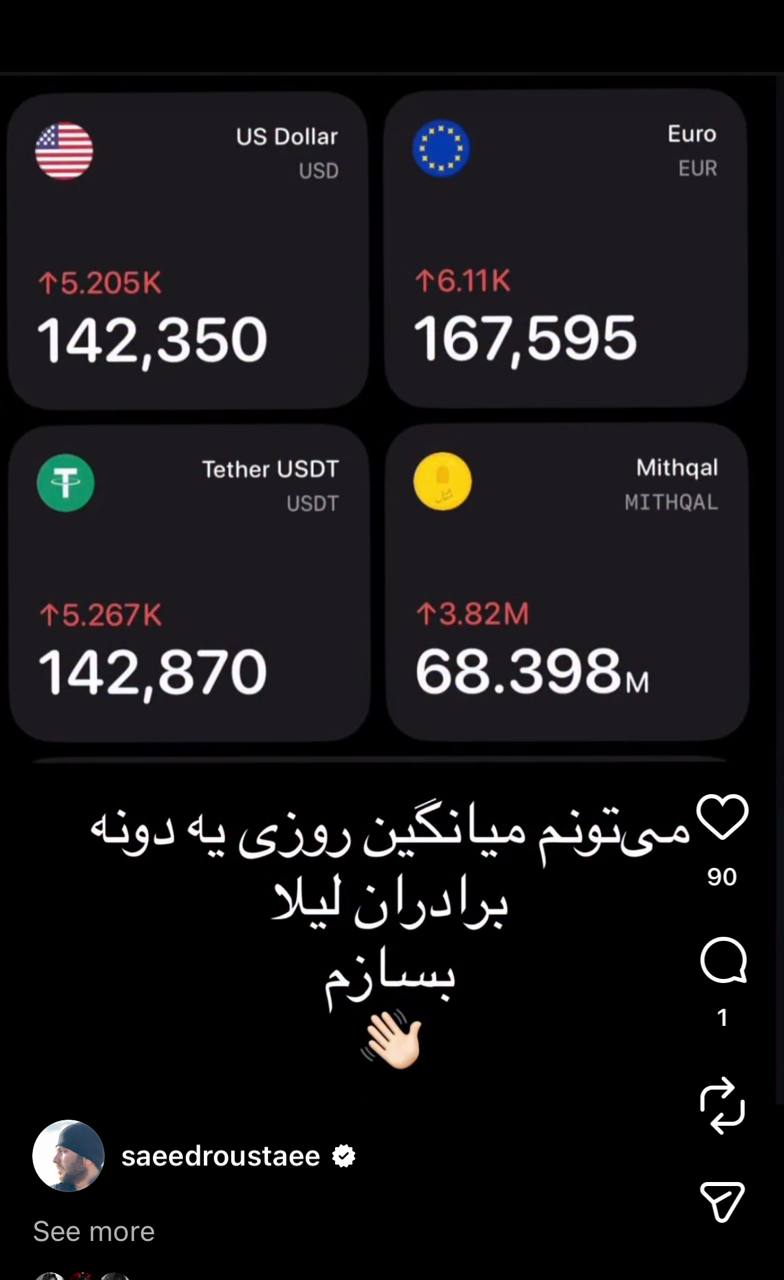 کنایه سعید روستایی به وضعیت دلار در صفحه اینستاگرامش مورد توجه قرار گرفت.