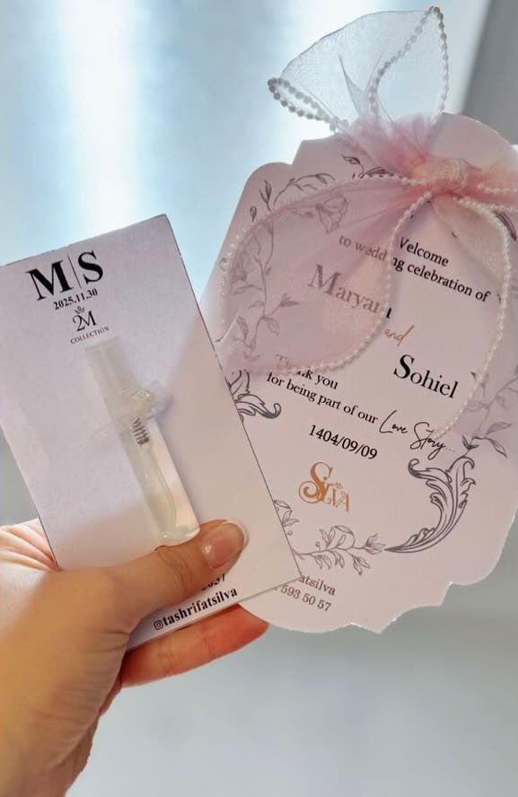 این رویداد باعث شد تا حواشی و جزئیات مراسم ازدواج این زوج برای مردم جذابیت زیادی پیدا کند. اخیراً تصویری از کادوی جالب این زوج به مهمانان منتشر شده است که شامل عطر بود. این خلاقیت و ایده جذاب در فضای مجازی توجه کاربران را به خود جلب کرده است.