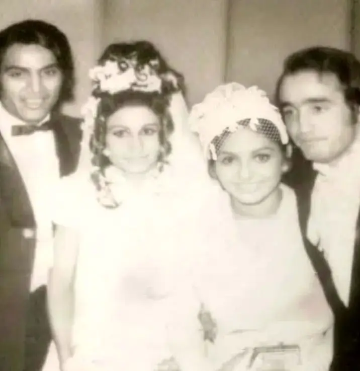 «گوگوش» ۱۹ ساله و همسرش «محمود قربانی» در عروسی «طوفان هل‌عطایی»